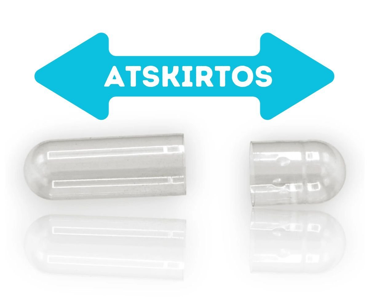 Farmacinės kokybės dviejų dalių kapsulės, skirtos užpildyti žolelėmis, vitaminais, maisto papildais ir kt.