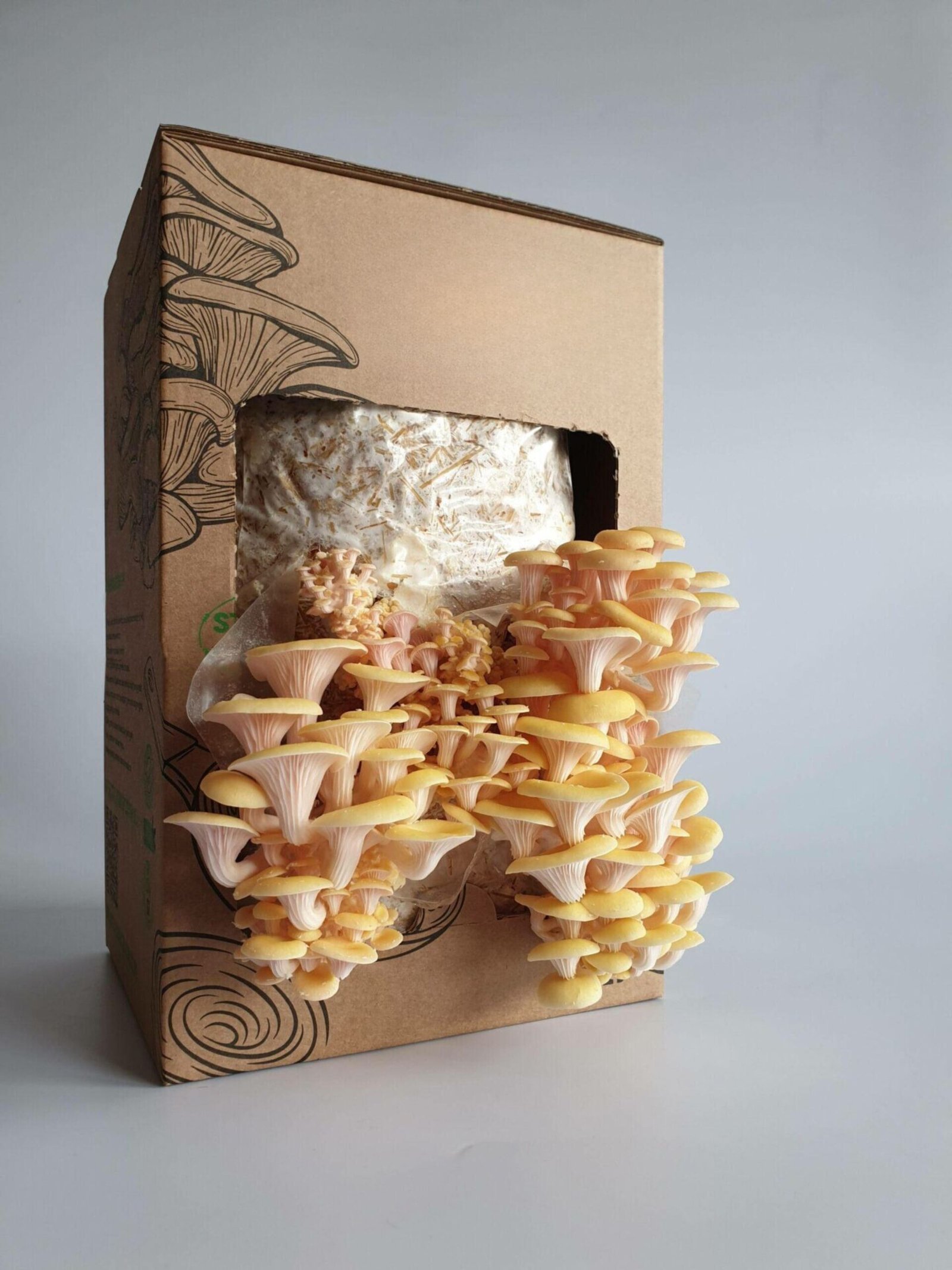 Citrininių kreivabudžių – Golden Oyster – Paruošta pakuotė auginimui namuose